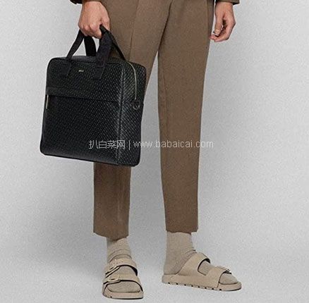 BOSS Hugo Boss 雨果·博斯 Ray_S Doc 男士仿皮公文包50490855,采用50%聚酯纤维(可回收)+27%聚氨酯(可回收)+23%聚氨酯的仿皮纹理面料制作,柔软细腻,配有两条携带手柄和一条可调节可拆卸肩带,双向拉链开合,正面有拉链插袋,品牌字母压花装饰。经典款式,是商务旅行的实用之选。规格:38×29×7cm。