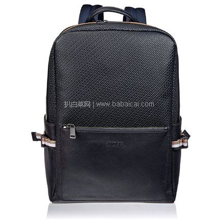 这款BOSS Herren City Deco_Backpack Rucksack雨果·博斯 男士时尚双肩包,货号50475475,尺寸大小约为42*30.5*10cm,采用抛光皮革面料,正面拉链袋和品牌字母压花,撞色肩带设计,时尚百搭。
