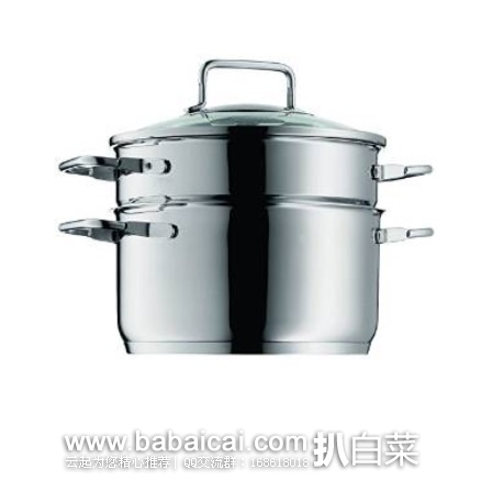 WMF 20 cm Steamer 完美福 20cm不锈钢蒸锅,按照亚马逊中国同款介绍产地是德国,包括1个蔬菜/土豆蒸锅,1个金属蒸屉和1个玻璃盖,大小适中babaicai.com锅身是WMF独家的Cromargan材质,在不锈钢中加入18%铬+10%镍,更加防锈且耐腐蚀。