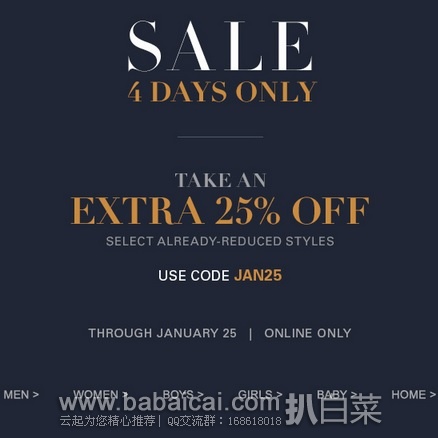 拉夫劳伦Ralph Lauren官网换新促销,折扣区6折活动仍在继续,今天又推出了阶梯满减活动。全场可以满$125-25,满$250-75,满$500-175,满$750-250,需要用优惠码JAN25,另外满$125使用优惠码FREESHIP125全场免运费。促销有效期至北京时间1月26日16点结束。拉夫劳伦官网活动地址>> | 男士>> | 女士>> | 男童>> | 女童>> | 小宝宝>> | Ralph Lauren拉夫劳伦官网最新教程(攻略)及男士polo衫尺码选择