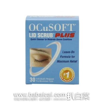 OCuSOFT成立于1986年,致力于研究眼科产品,其推出了第一款免洗型眼睑清洁剂,是比较值得信赖的眼科 公司之一。这款OCuSOFT Lid Scrub Plus, Pre-Moistened Pads, 30 Count 眼睑清洁湿巾,美亚销量第一,专利无刺激性配方,含有林格氏液(多作为生理盐水)、POE (80) sorbitan monolaurate(乳化,抗刺激)等成分,其babaicai.com可以有效地去除眼部周围的油污以及眼睑等,减少其刺激,比较适合于眼睑炎患者,缓解眼部的不适感。网友评论清洁效果还是不错的。擦拭完可以用清水冲洗一下。