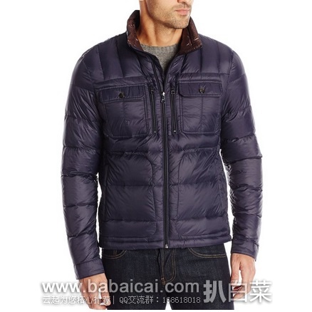 London Fog Men's Jud Packable Down Jacket男士羽绒服,采用100%防钻绒尼龙,立领全拉链设计,前胸双口袋装饰,轻薄款可压缩进附赠手提袋,简约衍缝条纹款比较时尚。