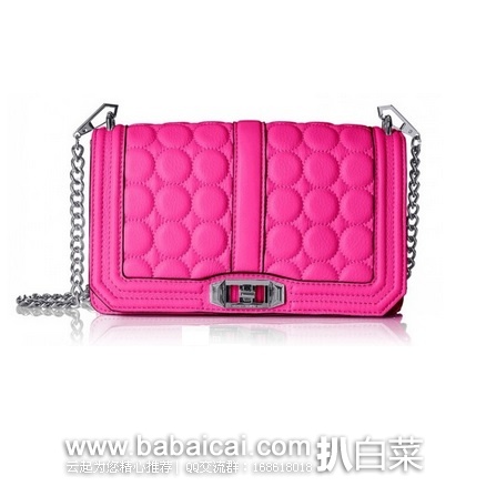 Rebecca Minkoff Love with Circle Quilt Cross Body 瑞贝卡明可弗真皮斜挎包,是今年的新款,Love系列大号,三围尺寸长25cm X 高17.5cm X 厚8.5cm,采用全皮材质,皮面波点图案,内部包括一个拉链安全口袋、两个侧边口袋和多个卡槽,便于区babaicai.com分放置物品,翻盖扣锁具有较好的防盗功能,链条肩带延续瑞贝卡一贯风格。