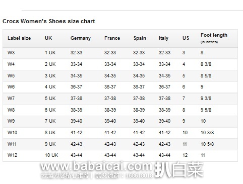 crocs女鞋尺码对照表,注意要uk码对eu欧码(germany\spain\france)参考