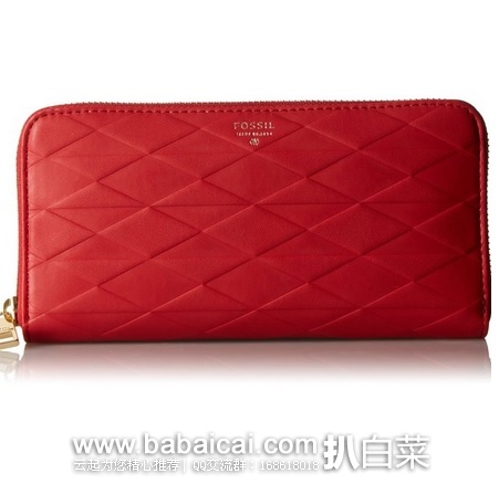 Fossil Sydney Zip Wallet 长款拉链钱包,化石的长款钱包,设计经典大方,包身前置烫金logo,大小约19.68*10.16cm,放人民币不会露头,顶部拉链开合,方babaicai.com便的同时安全系数高,内置12个卡槽、2个钞位以及1个拉链口袋 ,足够日常使用。目前多色可选择,部分为真皮部分为其他材质。美亚4.8星好评。