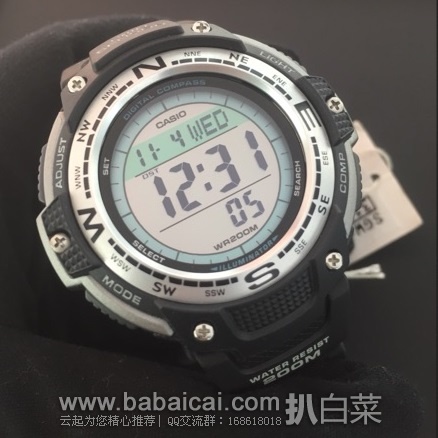 卡西欧CASIO是一家日本的著名电子产品制造商,卡西欧手表所代表的活力、年轻、时尚、多功能的品牌形象已深入民心。这款Casio Men's SGW100-1V 卡 西欧男士运动手表,采用石英机芯,配有温度和数字罗盘双重感应器,,支持16方位测量与显示,图形化babaicai.com方向指针,地磁偏角校正和方 位校正功能,可显示世界29个时区48个城市时间,全自动日历显示,还有EL背光照明,并且带闹铃、秒表功能。手表表镜采用天然水晶材质,表壳和表带均为 树脂,非常轻而且不刺激皮肤。表盘直径为51mm,200米防水,适合休闲和潜水。
