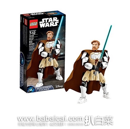 这款LEGO乐高星战系列欧比旺·克诺比,货号为75109,内含83个颗粒,拼装完成后高度约25.5厘米,附带蓝色光剑,人物四肢babaicai.com十分灵活,可以随意摆动,星战迷们速来收集。