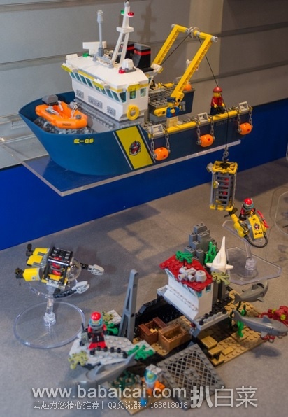 此款LEGO 60095 City Explorers Deep Sea Exploration Vessel 深海勘探船,共有717个颗粒,人仔多达7个,另外还有一艘打捞船,一艘沉船,水下摩托,潜水机器人,以及鱼类若干,内容丰富,趣味性很高。而且看网友评论,船体似乎真的可以漂浮。