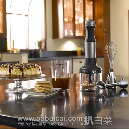 KitchenAid KHB2352CU 3-Speed Hand Blender厨宝 KHB2352CU三速多功能搅拌器的最大特点就在于多样性,配备了三速搅拌功能,较比一般的两档手持搅拌器增加了一档,除了普通的碎冰搅碎功能外,增加的一档还可以碎骨打泥。随机器配套的电动套装也非常实用,包括一个babaicai.com可替换的打蛋搅拌头、一个自带刀刃的搅拌碗,一个搅拌杯。功能全面:打蛋、冷饮制作、食彩料理样样精通。