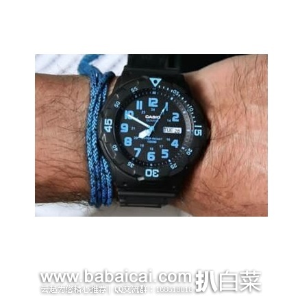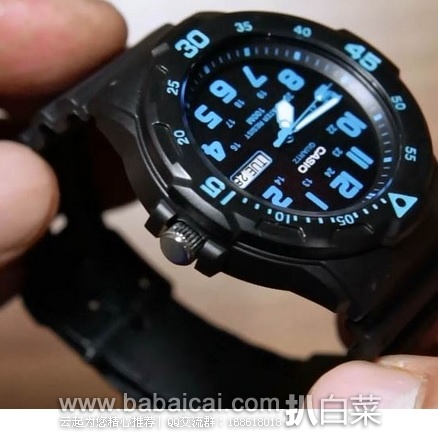 此款Casio Unisex MRW200H-2BV Neo-Display Black Watch with Resin Band卡西欧运动腕表,中性款,男女皆可戴,采用日本石英机芯,时间日期babaicai.com双显,整体的款式简洁时尚,充满运动气息,屏幕上较大的数字刻度,简洁易读,蓝色的荧光表针即使在晚上看时扒白菜间也是极为方便的。防水深度可达100米。可以用来搭配服饰。