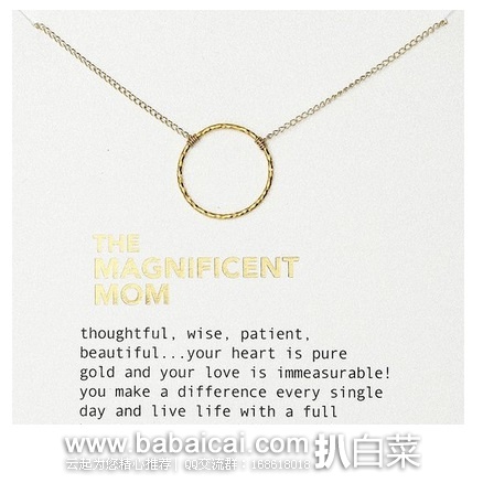 这款Dogeared The Magnificent Mom Little Sparkle Karma Chain Necklace朵吉兒 镀金纯银锁骨链,The Magnificent Mom直译为“高贵的母亲”,美国生产,采用925纯银材质,外层镀金处理,从其寓意看来送给母亲最为适合的。