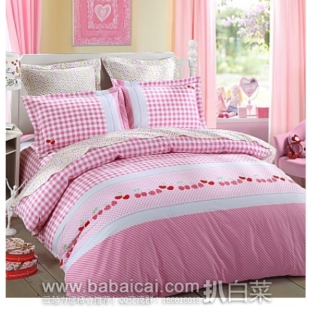 这款樱桃格子(粉色) 全棉斜纹印花四件套,原价¥998,现1.5米~1.8米床均秒杀价¥197包邮。全棉面料,柔软亲肤;童话般的梦幻粉色格格,美好又温馨,想生活在城堡里的公主一样。LOVO官网购买地址>>