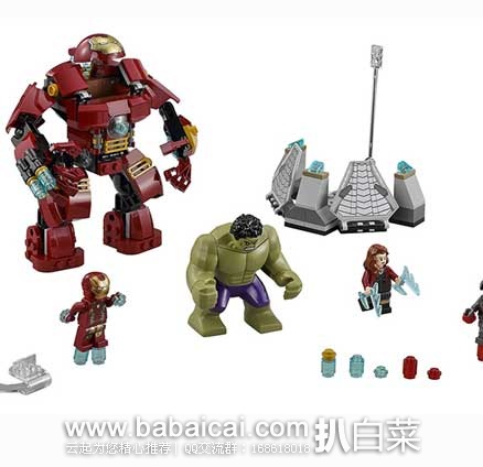 还记得浩克失控的时候唯一能与他抗衡的大号钢铁侠吗,没错就是他!LEGO Superheroes The Hulk Buster Smash 乐高超级英雄系列 绿巨人克星共有248个颗粒,适合7-14岁儿童,带有包括浩克在内的4个人偶,以及少许配件,作为场景还原再好不过啦!