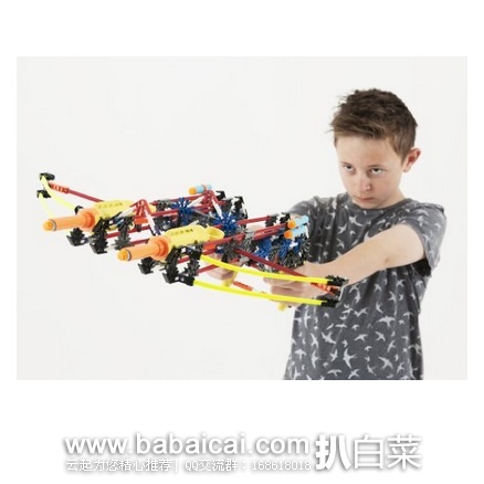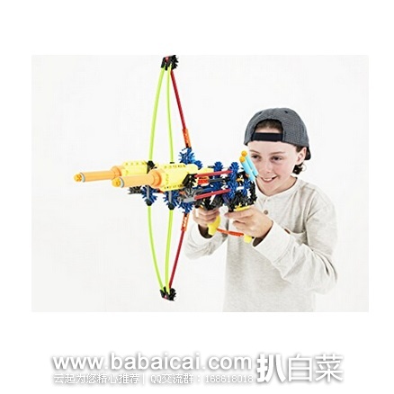 这款K'NEX K-Force Dual Cross Building Set, 368 pc科乐思 双管十字弓发射器 拼插套装(368片),美国生产,适合8岁以上儿童,含7枚泡沫子弹,射程达29米,共支持6种形态的自由组装,如横、竖状态的双管十字弓和大炮等,十分具有玩耍乐趣,含368片,兼容K-Force系列玩具的所有其他部件。