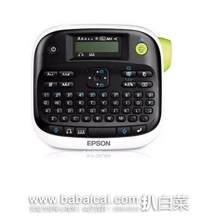 Epson LabelWorks LW-300 Label Maker 爱 普生超便携标签打印机,体积小巧,操作简单,适合各类人群。内置14种字体,75种以上边框、300种以上符号和图形,同时可以实现连续打印、序号打印、 条形码打印、镜像打印、线缆标签打印、索引标签打印等,更支持50条储存记录。还能够支持特殊的用于babaicai.com礼品包装的缎带标签、带有底纹的 印花标签、可熨烫的衣物烫印标签、可适应黑暗环境的荧光标签等。自带液晶和键盘,同时支持连接电脑打印。尺寸为15 x 14.5 x 5.5 cm,重量仅400g,使用6节5号碱性电池供电。