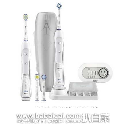 套装除2个手柄以外,还包含1个CrossAction刷头,1个3D美白刷头、1个敏感刷头、1个深层清洁刷头和旅行配件,配有计时器。