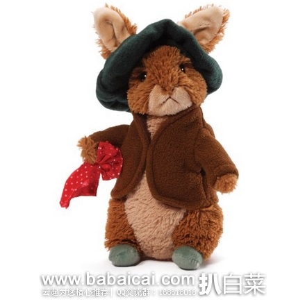Gund 4048911 Classic Beatrix Potter Benjamin Bunny Stuffed Animal Plush 呆 萌邦尼兔,做工精致,采用最柔软的毛绒面料制成,造型呆萌可爱,憨态可掬。咖色抓绒外套配上小黑帽子,手里在拿个红绸子蝴蝶结,造型好搞怪。身高16.5CM。国内某宝买回来几天就掉毛的,还是海淘靠谱啦!女孩子 总是需要一个暖暖的毛绒在身边,萌萌哒!
