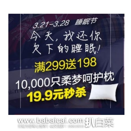 活动非常给力。另外还有 浴裙三件套特价¥29.9包邮、柔梦呵护枕秒杀价¥19.9包邮、LOVO 薰衣草太空记忆枕,助眠分压枕特价¥129包邮等,更有大量¥199特价的纯棉四件套等。