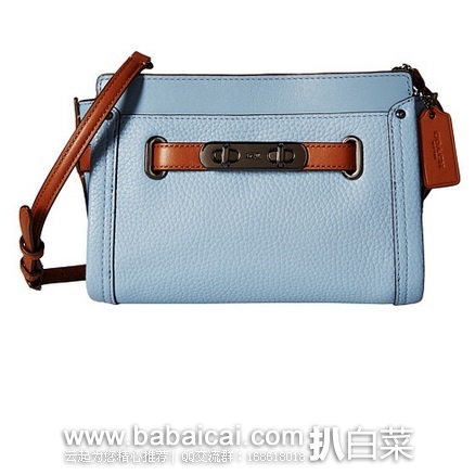 COACH Swagger Wristlet 蔻驰女士斜挎包,包身采用荔枝纹真皮材质,拼色设计更显时尚,拉链封口,正面旋锁装饰,内部设计有拉链袋和多功能插袋,尺寸约20.5*15*5cm,空间也不小,肩带可调可拆卸,带腕带,斜挎手拿均可,时尚精美的同时也保证了实用性。
