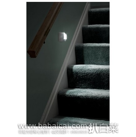 Mr.Beams是美国的著名的户外LED照明品牌,感应灯的销量稳居全美前列。这款Mr. Beams MB532智能感应小夜灯,亮度为35流明,光照范围约11平方米,尺寸为10*5*8.9cm,不用担心占地方,而且不需要插座,也不需babaicai.com要在家里布线,魔术贴的设计可以粘贴家里任何地方,也可以用螺丝固定,电池供电可以正常使用30小时。内置智能感应器,20~60秒自动关闭,IP44级别防水,不用担心受潮。