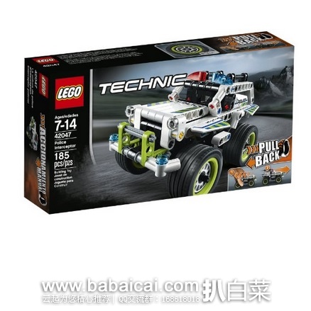 LEGO Technic 42047: Police Interceptor Mixed乐高警用拦截车,编号42047,共有185块颗粒,拼装完成尺寸9 x 15 x 9cm,带回力马达,可玩性颇为不错。评测视频