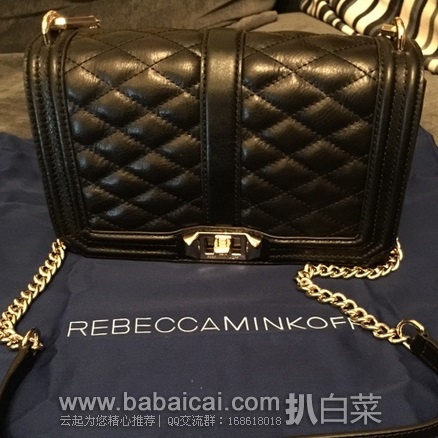 Rebecca Minkoff Love Cross Body Bag瑞贝卡明可弗真皮斜挎包,是Love系列大号,三围尺寸长25cm X 高14cm X 厚8.5cm,采用全皮材质,皮面衍缝处理立体经典菱格图案,内部包括一个拉链安全口袋和两个侧边口袋,便于区分放置物品,翻盖扣锁具有较好的防盗功能,链条肩带延续瑞贝卡一贯风格。