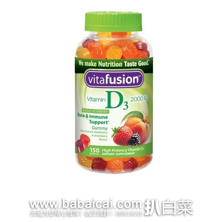 Vitafusion Vitamin D3 成人维生素D营养软糖 特价.49,用券85折+S&S实付新低.99,到手¥60