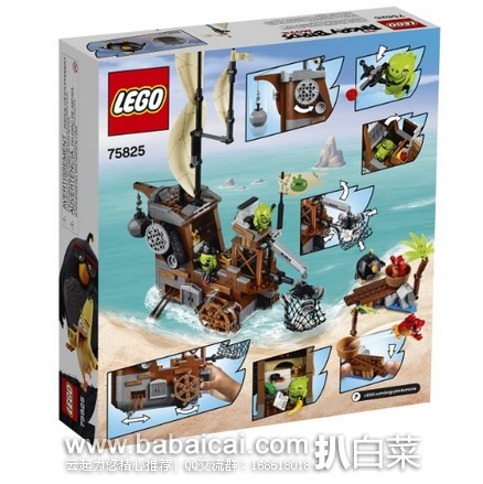 2016新系列,LEGO 乐高 75825 愤怒的小鸟系列 猪盗船 620颗粒 原价$60,现历史低价$47.99,到手¥410,国内¥800+