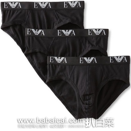 安普里奥·阿玛尼Emporio Armani简称EA,是阿玛尼第一个最重要的副牌,占1/4营收。贝克汉姆、C罗都是EA的代言人,EA也是海淘最热门的品牌,在价位上和法国鳄鱼差不 多,比CK贵20%的样子。EA国内一件外套2000元起步,内裤一条120元起步。这款Emporio Armani Men's Three-Pack Cotton Briefs安普里奥·阿玛尼 Emporio Armani男士三角内裤采用100%纯棉材质制作,经典款型,宽版腰带上带品牌Logo,可机洗。