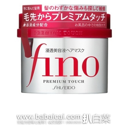 此款Shiseido Fino Premium Touch Hair Mask, 8.11 Ounce神奇发膜含七种美容液精华成分,包括蜂王乳精华、海藻糖、PCA毛发紧致成份和修护保湿因子等,能从发根深入渗透到发梢,呈现柔顺亮泽。经常烫发染发或头发干枯毛躁的妹子们不妨试试,使用后,发质变得更顺滑,有光泽弹性