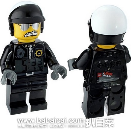 LEGO来自丹麦语“LEGGODT”,原意为“尽情地玩”。这款LEGO Kids' 9009952 Bad Cop Figurine Alarm Clock 乐高黑警闹钟9009952,采用日本石英机芯,前面自带背光LCD数显,方便读数一目了然。背部有电源开关和时间按钮,同时该闹钟具有贪睡功能,还可以让它可静坐可站立,而且拥有一双可动的手臂,属于乐高大电影系列。适合送给孩子作为礼物,或是该系列乐高收藏迷入。