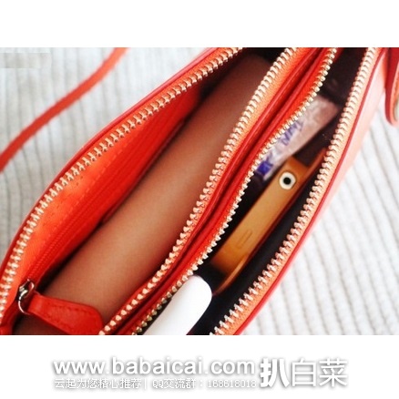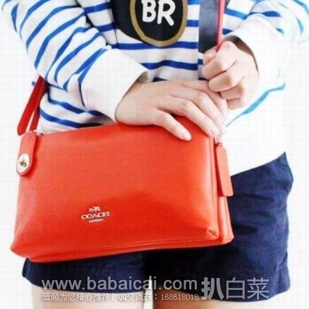这款COACH Smooth Leather Crosby Crossbody 蔻 驰 真皮斜挎包,是2015年秋款,属于Coach最受欢迎的款式之一克罗斯比系列,采用柔软小牛皮面料,精致细腻。顶端双拉链封口,包前饰有辨识度很高的 LOGO,简babaicai.com洁明了,婉约大气。外形尺寸为25*15*6cm,包内设有一个拉链袋,多功能插袋,空间也不小,鲜艳的橙色也很好 搭配,通勤出街均适用。
