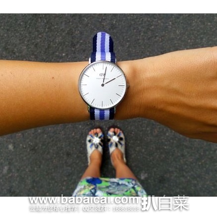 学院风、休闲范!这款Daniel Wellington 0609DW 女士时尚腕表,属于经典Trinity系列,紫色小清新!内置石英机芯,走时精准;外观精致简约,白色表盘搭配简洁的时标和指针,蓝白紫三色相间的尼龙表带,银色表圈,随性又帅气,不管是出席正式场合还是休闲时刻都妥妥滴!