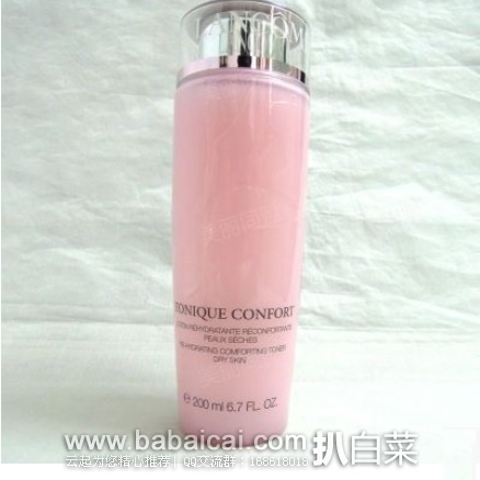 LANCOME CONFORT tonique PS 200 ml 兰蔻玫瑰露清滢柔肤水/温和保湿水,富含植物性乳蛋白(杏仁萃取物),谷类和酵母萃取物能滋养并柔软肌肤。蜂蜜及植物精华成分,柔和的质地适用于干性肌肤,起到软化角质以利于保养品更好的吸收。粉红色的稀薄乳液质地很浓稠,水虽然很稠,但是非常容易吸收。淡淡的玫瑰香气,保湿效果很好,涂上之后滑滑的。适合干性及脆弱敏感性肌肤使用。如果你的肌肤状态不是很好,容易敏感的话建议用这款爽肤水调理一下,给予肌肤滋润,帮助后续保养品的吸收。配合水分舒缓日霜、晚霜使用效果更加显著!乳状的化妆水能徹底清洁却不刺激脆弱敏感的肌肤。