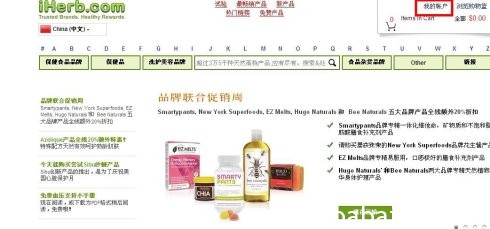 1.注册iherb账号a. 登录网站www.iherb.com/healthy-home,选中国旗,变中文界面,点击右上角“我的账户”。