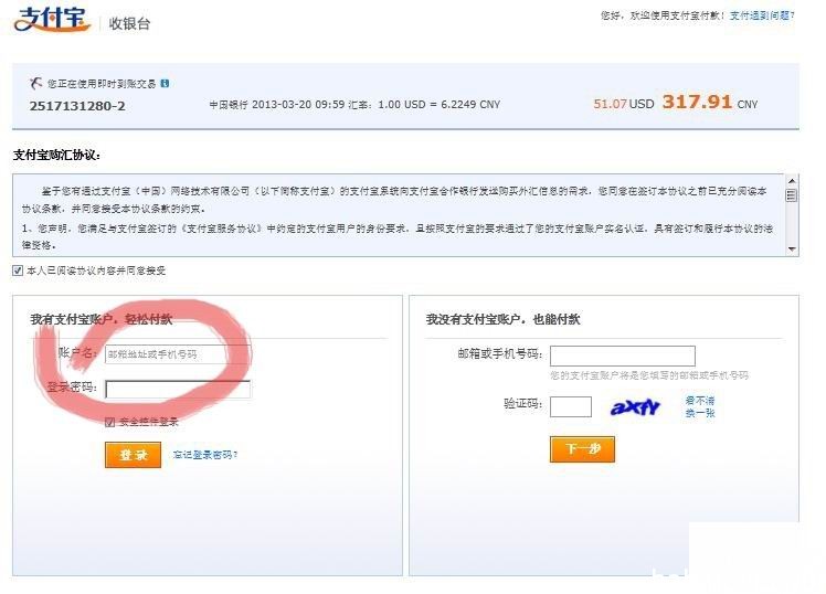 (2)如果是选择支付宝支付(上图左边),点左边“使用支付宝支付”按钮,接下来应该就直接进入支付宝的登录界面了,输入支付宝信息完成支付就可以了,操作跟淘宝差不多。