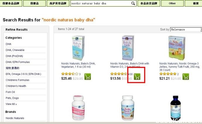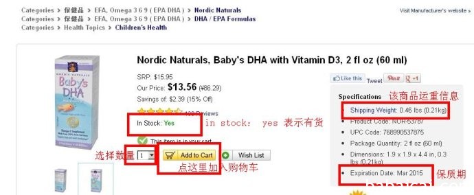 比如购买北欧深海鳕鱼dha+鱼肝油,找到后,可以直接加入购物车(点击红框处的购物车标志即可)