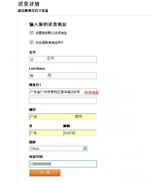 c.完全按照要求中文填写国内收件地址,点"继续"。