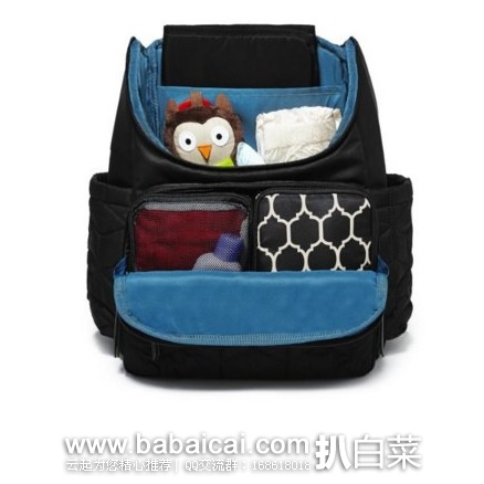 来自美国纽约的时尚奢华婴童品牌Skip Hop成立于2003年,其团队高度重视产品安全,致力于创造出安全、独特、强大的产品,爸爸去哪儿里的费曼feynman就是用的这牌子。这款 Skip Hop Forma Backpack, Black妈咪包采用双肩背包款式,也可以挂在童车上,面料采用超耐磨的100%涤纶帆布,前侧带拉链大口袋可以放置随时拿取的物品,绝热设计的侧袋可以放水瓶和奶瓶等。另外附带两个小包包,可用于装尿片及一些小东西,款式经典时尚,功能齐全,是时尚辣妈带宝宝出门的必备之物。