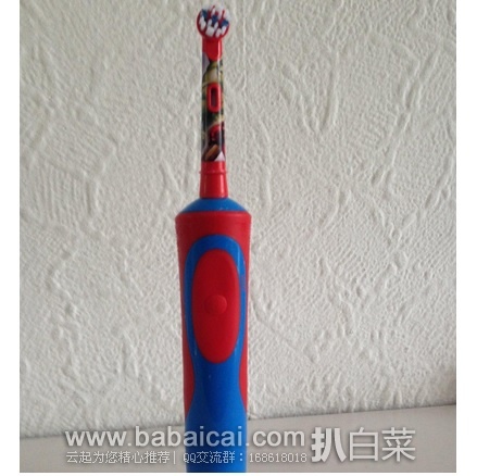 Braun Oral-B Stages Vitality Avengers Electric Toothbrush for Kids博 朗欧乐-B儿童电动牙刷为3岁以上儿童设计,产品内含一支电动牙刷,同时附带充电底座。限量版的复仇者联盟卡通形象深受小朋友的喜欢,在刷牙的同时更添 babaicai.com加乐 趣,养成爱刷牙的好习惯。和手动牙刷相比,可去除高达2倍牙菌,杯型刷头全面覆盖牙齿表面,2D回旋转动,每分钟5600的侧面转速尤其适合儿童,每天享 受如专业牙医洗牙般的深度清洁。手柄专为孩子小[email protected]��软材料制成,富有弹性,帮助孩子的小手掌控自如,帮助30天内养成正确刷牙习惯。直接本机插入式底坐充电,安心使用。刷头可更换。刷头中间的蓝色显示刷毛会随磨损而由蓝色变为 白色,当刷毛的一半呈现白色时,提醒您该为孩子更换刷头了。220v国内通用电压。