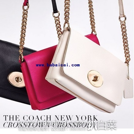 这款COACH Polished Pebble Leather Crosstown Crossbody蔻 驰女士斜挎包,采用真皮材质,荔枝纹设计,手感手软舒适;设计简约经典;正面babaicai.com金色旋扣开阖,搭配金色链条,时尚亮眼又不过分华丽,适合通 勤、约会等各种场合携带;内里有隔层可分类放置物品,尺寸为23*14*5cm,平时出门逛街,这样一款小小的斜挎包实用又美的不行!