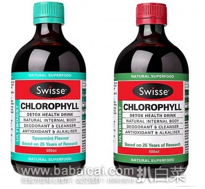 Swisse Chlorophyll 排毒养颜 调节肠胃叶绿素液可以清理肌肤内的毒素、促进新陈代谢,平衡酸碱,形成不易生病的碱性体质,提高人的抗氧化能力。两种口味,一种薄荷味,一种混合莓果口味。薄荷味地址>> | 混合莓果味地址>>