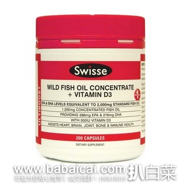 很多人都知道鱼油对身体好,但是因为难以忍受鱼腥味,无法坚持下去。Swisse Wild Fish Oil + Vitamin D3维他命D3野生鱼油来自可持续发展的无污染的太平洋的深海领域,含有优质Omega-3脂肪酸,EPA和DHA,没有鱼腥味,很容易吞服。加入了维他 命D3,能够更好的帮助鱼油吸收。