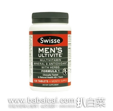现代男性的工作生活压力大,Swisse专为现代都市男性设计的配方Swisse Men's Ultivite 男士复合维生素片富含男同胞每日所需的必要维生素、矿物质和草本元素,并特别添加抗老化元素。能有效抗疲劳,舒缓压力,改善男性生理机能,帮助男士保持活 力,缓解压力,改善紧致的情绪。Healthpost购买地址>>