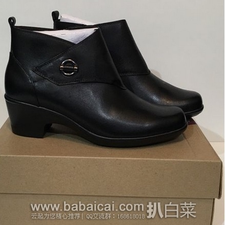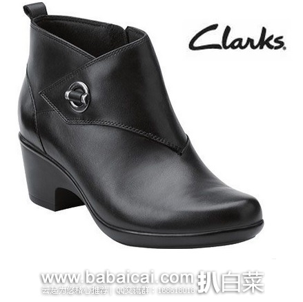 Clarks Women's Malia Surf Boot 其乐女士短靴,真皮鞋面,不对称拼接设计,金属扣件装饰,让靴子不在呆板。吸湿透气织物衬里,OrthoLite®舒适耐用气垫鞋垫缓震,内侧拉链穿脱方便,TPR橡胶外底,轻盈而富有弹性。靴高约10厘米,粗跟高约5厘米,靴口周长约27厘米。