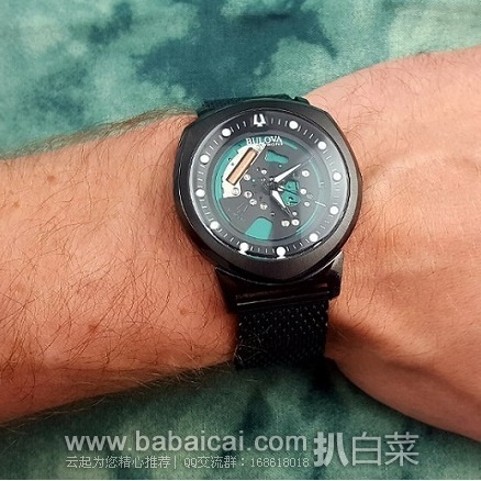 Bulova Men's 98A136 Accutron II Analog Display Japanese Quartz Black Watch 宝路华男士石英腕表,外观炫酷,颇有运动feel~采用日本石英机芯,走时精准;矿物晶babaicai.com体表镜防刮耐磨,黑色镀离子不锈钢表壳表带,酷感十足!配上透视的表盘,更是显眼无比!表径42mm,防水30m,日常扮酷耍帅使用还是不错滴!