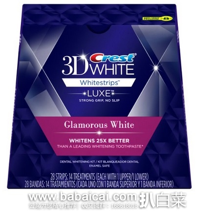 告别陈年牙渍,还你一个洁白的笑容。这款 Crest 3D White Luxe Whitestrip Teeth Whitening Kit, Glamorous White, 14 Treatments 牙贴可以提供专业级的牙齿美白效果。使用牙贴时仍然可以说话和喝水。牙贴会在牙齿上完全自然覆盖,剥落后干干babaicai.com净净无残留物。每天使用一次,每次30分钟。最好贴完再刷牙,效果更好,急速美白牙贴产品更可在1小时内快速实现牙齿美白!坚持使用牙齿会变白好几度。小编也在用,确实挺有效,偶尔会一点点牙酸,不要贴到牙龈就好,贴完后刷牙,牙齿会变白变光滑~