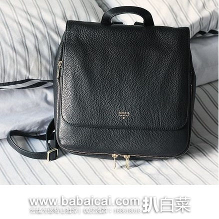 Fossil Preston Small Fashion Backpack 化石 女士真皮双肩包,表面为100%真皮材质,棉质衬里,内部设有多个拉链口袋,可以放置babaicai.com随身小物,上部磁力开合、底部拉链开合的特殊设计,好看又别致,尺寸背刚刚好,街拍也是棒棒哒。