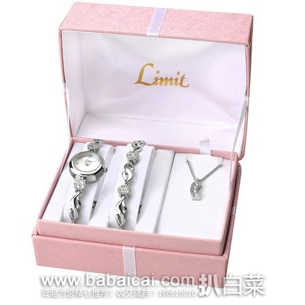 Limit Women's Quartz Watch with White Dial Analogue Display and Silver Alloy Bracelet 6201G.27女士时装腕表/手链/项链套装, 非常漂亮的手表,还有一条搭配的babaicai.com手链和一条项链,非常划算,手表小表盘,直径为22mm,珍珠母贝表盘也很精致,盒子很精美,买来送人也不错哦。