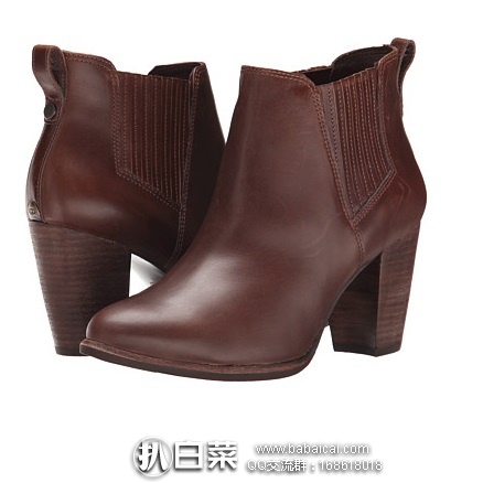 6pm:UGG Poppy 女士深棕色真皮粗跟踝靴 原价$195,现特价$97.99,公码9折新低$88.2,到手约¥695